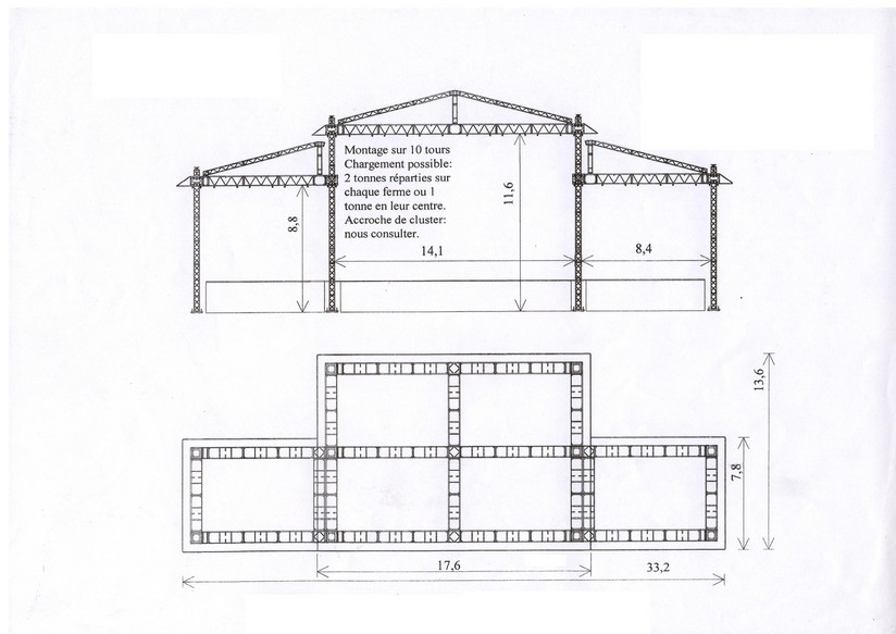 Montage sur 4 tours. Hauteur maximum : 9 mètres.