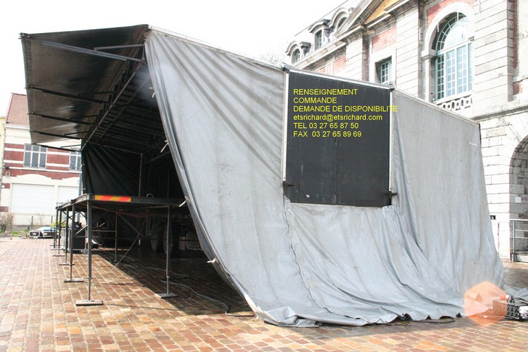 SCENE COUVERTE COMPOSE D'UNE COUVERTURE DE SCENE ET UN PLATEAU DE SCENE POUVANT ETRE INSTALLE SEPAREMENT