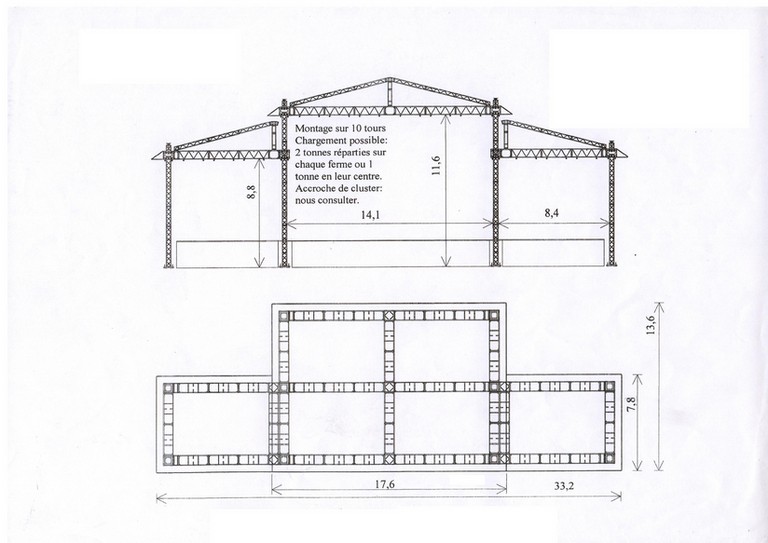Montage sur 4 tours. Hauteur maximum : 9 mètres.