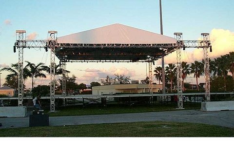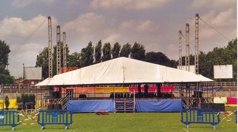 SCENE COUVERTE COMPOSE D'UNE COUVERTURE DE SCENE ET UN PLATEAU DE SCENE POUVANT ETRE INSTALLE SEPAREMENT
